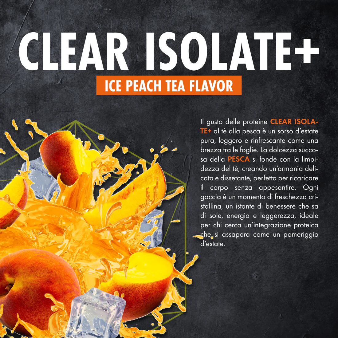 CLEAR ISOLATE+ FRESH PROTEIN è un integratore di proteine isolate del siero del latte, un prodotto essenziale per l’allenamento estivo, che trasforma il solito frullato proteico cremoso in una bevanda fruttata e rinfrescante per il post-allenamento. Inoltre, le CLEAR ISOLATE+ non apportano né zuccheri né grassi e ogni dose contiene 22 g di proteine.